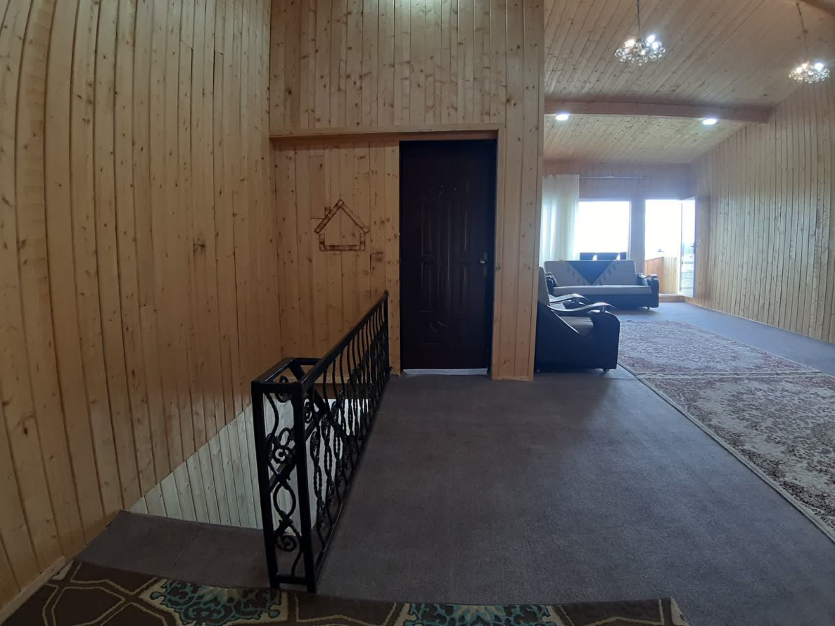 طبقه بالا بصورت چوبی ساخته شده دارای هال بزرگ و یک اتاق خواب با تخت دونفره و دو کاناپه قابل استراحت می باشد. همچنین دارای بالکن که ویو آن بسیار زیبا و مشرف به شهر ماسال بوده و شهر زیر پای بیننده می باشد.