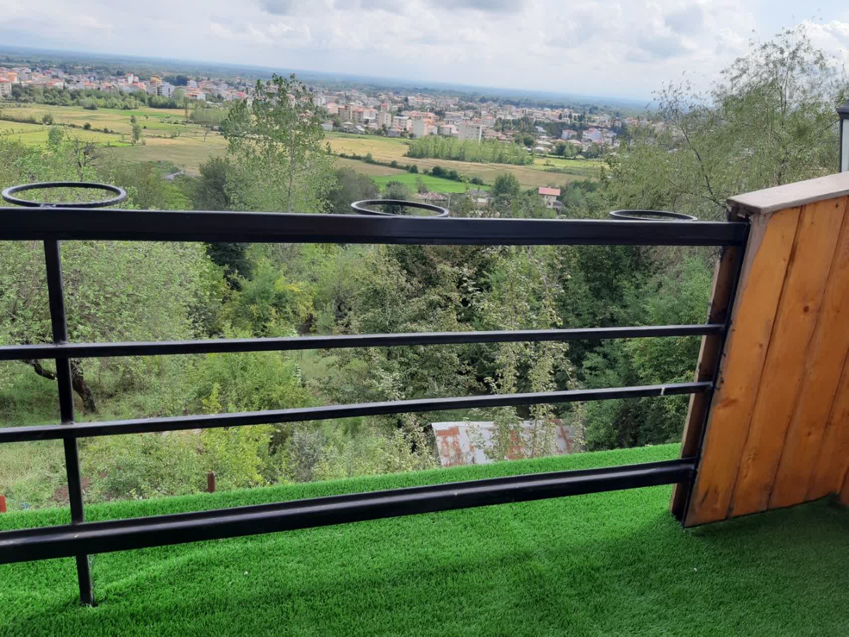 یک پله کنار ساختمان وجود دارد که مسافر میتواند در صورت تمایل از آن پایین رفته و به حیاط وسیع پایین وارد شود که بصورت جنگلی هست.